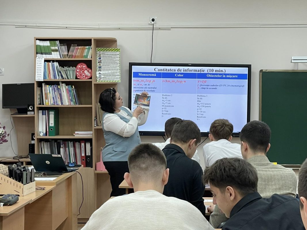 În cadrul Atestării 2024, în instituția noastră s-a desfășurat ora publică, la disciplina informatica în clasa a XI-a „A” profil real. Doamna Olesea SILIVESTRU, directorul liceului și profesor de informatică a prezentat subiectul ,,Cuantizarea imaginilor”, prin diverse activități interactive elevii au realizat calcule pentru a vedea câtă informație conţine o imagine monocromă, o fotografie color și un film color. O lecție bine gândită, interesantă, cu relevanță actuală, a fost apreciată cu calificativul FOARTE BINE.